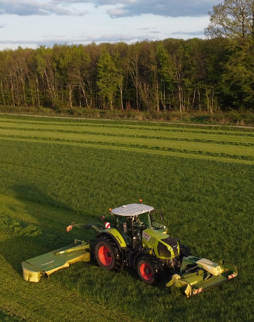 Faucheuses équipées d'un groupeur à vis permettant d'andainer pour récolter du fourrage vert.